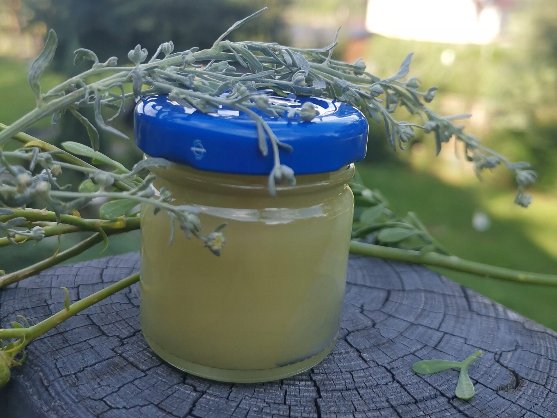 Głównymi składnikami naszej wcierki jest olejek rozmarynowy oraz ocet rozmarynowo-skrzypowy na bazie naszego domowego octu jabłkowego, to żywy ocet, który powstał w Naszym Gospodarstwie Rolnym.