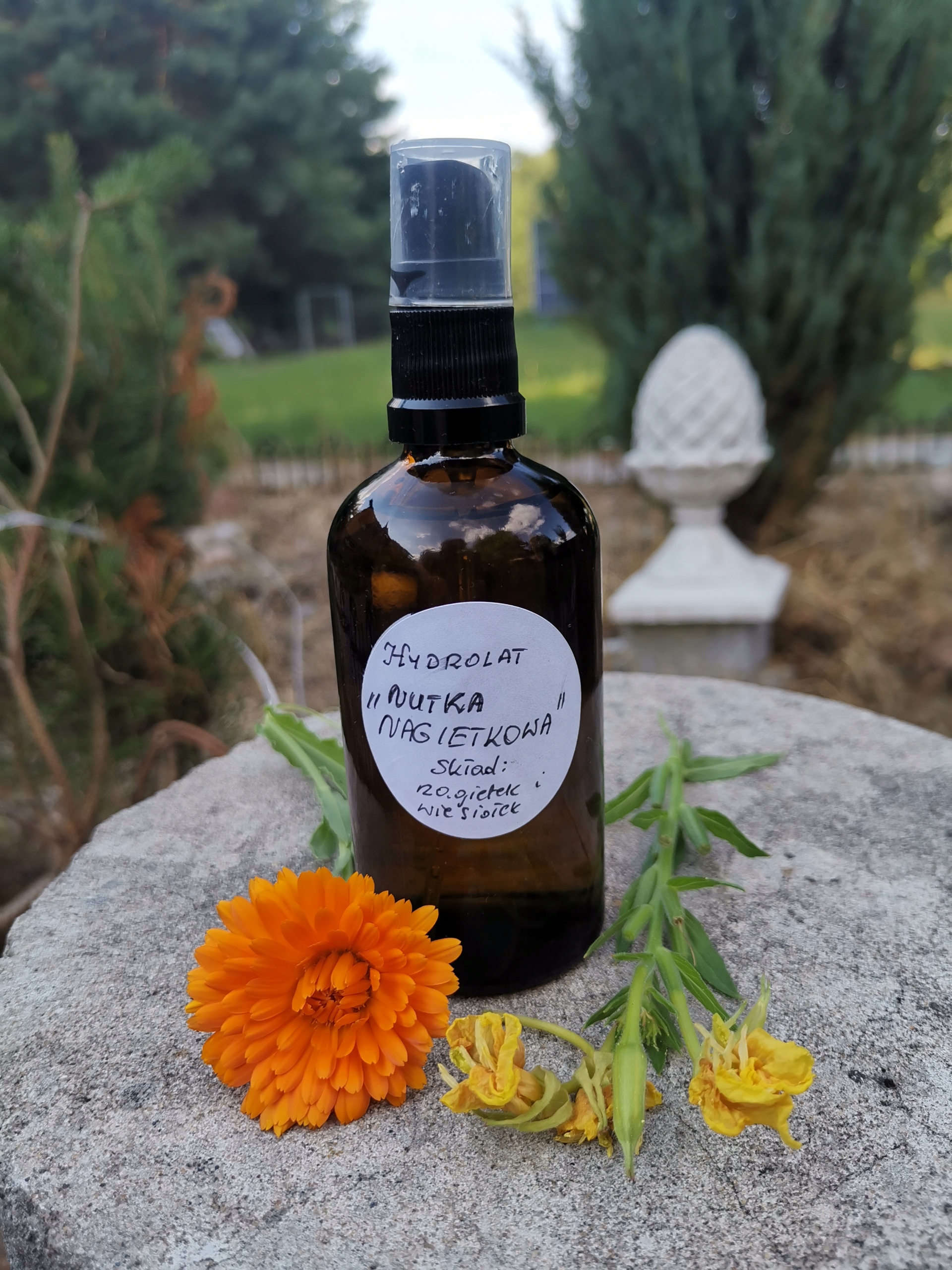 Skład: naturalny hydrolat z nagietka i wiesiołka