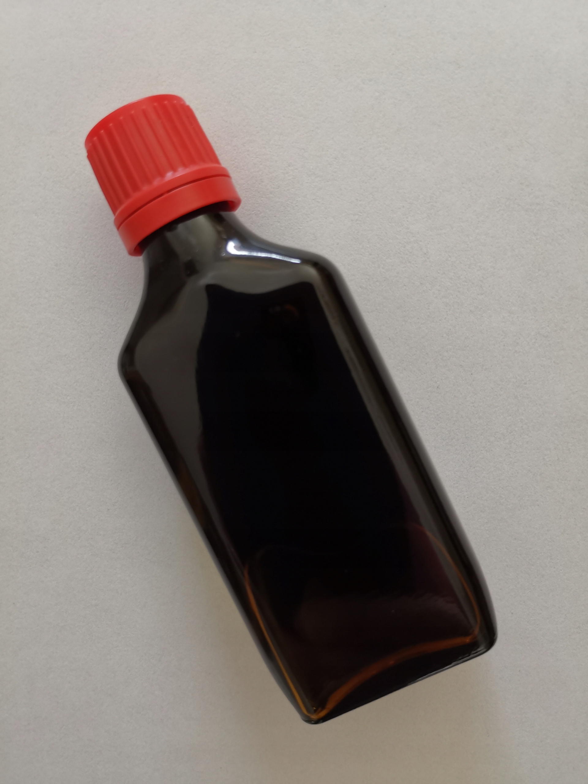 Butelka szklana, ciemna, brązowa, zakrętka.